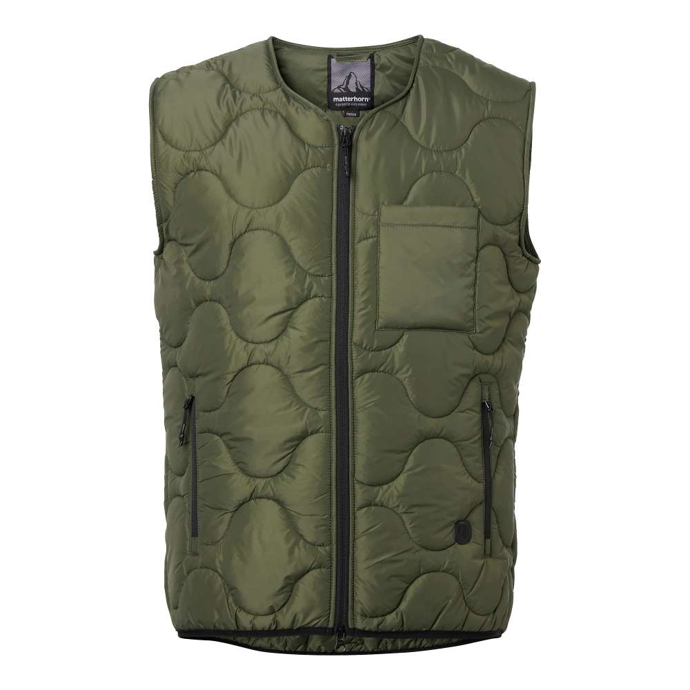 Beckey Puffer Vest från Matterhorn är en lätt vadderad väst med klassiskt quiltmönster, designad för att hålla dig varm och bekväm i alla sammanhang. Beckey Puffer Vest från Matterhorn är en mångsidig lättviktsväst som kombinerar stil och funktion fö r att ge optimal värme och komfort. Västen är tillverkad i återvunnet material och är perfekt som et t mellanlager vid kyligare väder eller som ett självständigt ytterplagg för mildare dagar. Med sitt klassiska quiltmönster och minimalistiska design passar Beckey lika bra för vardagsbruk som för mer uppklädda tillfällen. Den ger dig rörelsefrihet och värme utan att kompromissa med stil, vilket gör den idealisk för både fritidsaktiviteter och stadsmiljö.